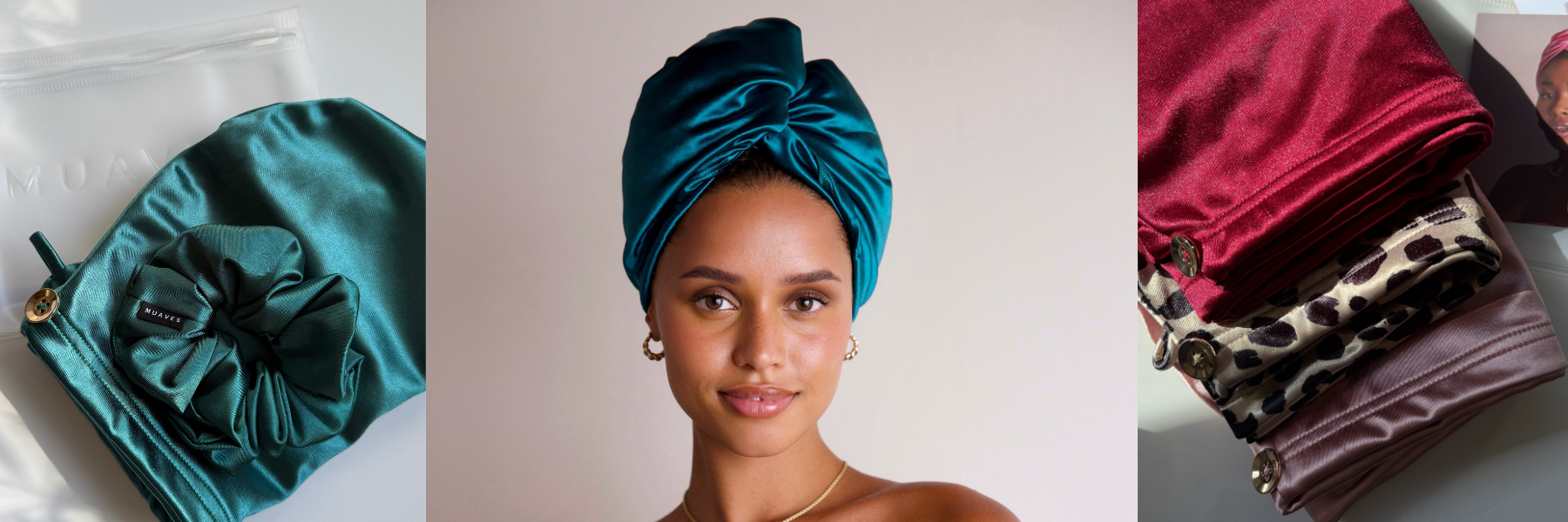 The All Satin Hair Wrap is made for high-volume, textured hair — think curls, coils, and thick natural strands that need gentle protection without slipping off at night.