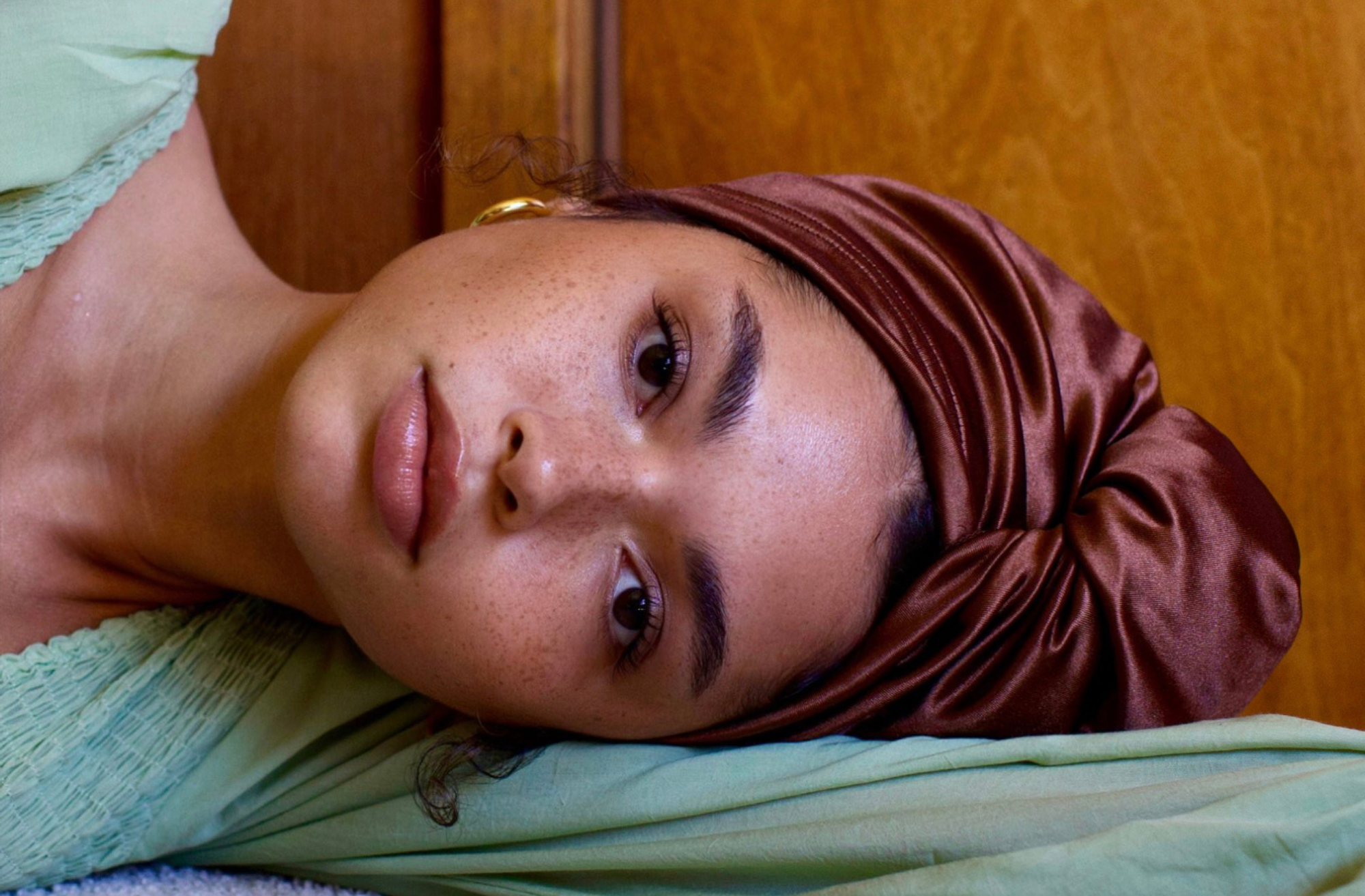 "Finally, a hair wrap that's both beautiful and functional! The fit is perfect and my curls have never looked better. Plus, it's so gorgeous I don't mind answering the door wearing it!"
